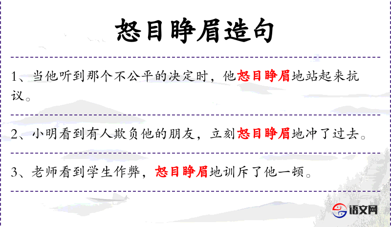 - 当老师看到学生作弊时,他怒目睁眉地训斥了他。