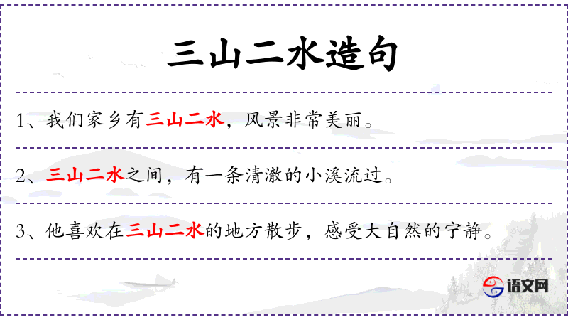 1. 【三山二水】 三山:护国山,位于南京西南,以有三峰得名;二水:白鹭洲,位于长江之中,分江面为二。泛指南京的山水。