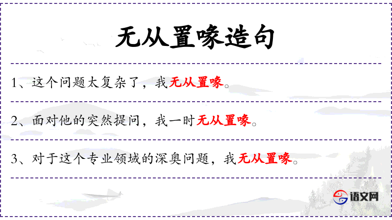 - 无从置喙:成语,意思是无法插嘴或发表意见。