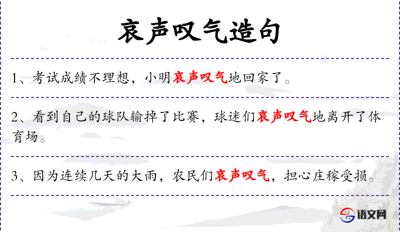 - 谓语:哀声叹气,感到