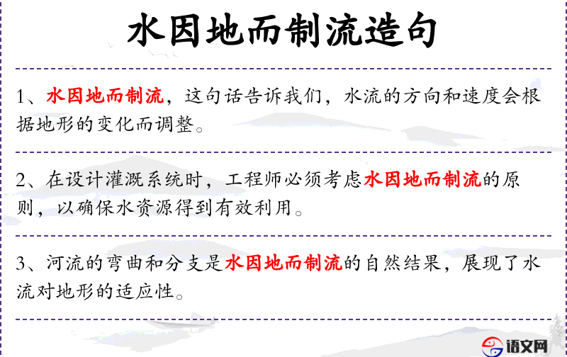 1. 【水因地而制流】 制:引,限定。流水因地势而引出其流向。比喻用兵时要按敌人的具体情况来采取制胜的办法。