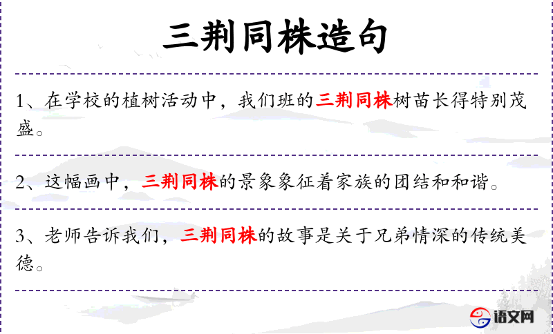 1. 【三荆同株】 荆树虽三杈而同一株干。比喻同胞兄弟。也指兄弟分而复合。