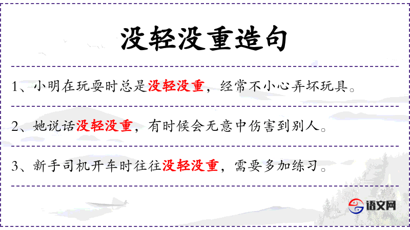 1. 【没轻没重】 - 指言语或动作鲁莽。