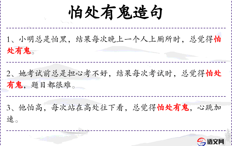 - 怕处有鬼:短语,表示担心的地方可能有不好的事情发生。