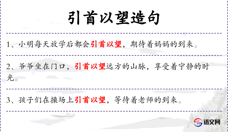 文化意义: 在文化中,老师是知识的传递者,孩子们对老师的到来通常充满期待和尊敬。 相关成语:** 引首以望