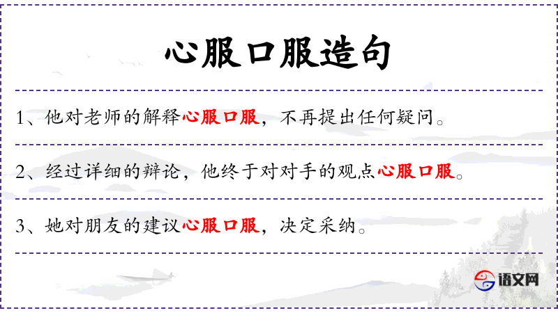 - 心服口服:完全信服,没有任何异议。