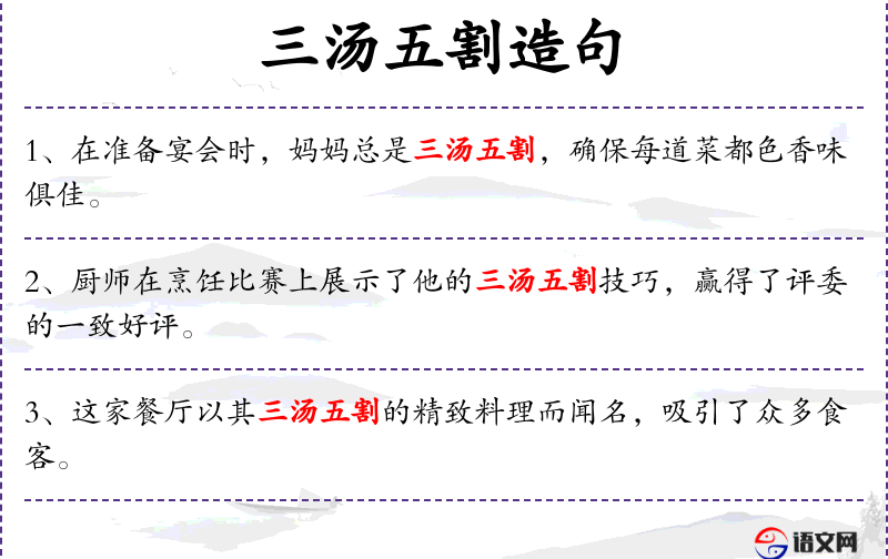 泛指烹饪之事。也指各种肴馔。同“三汤两割”。