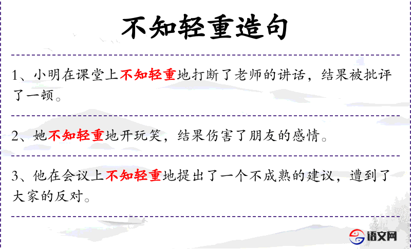 - 不知轻重:成语,形容人做事不考虑后果。