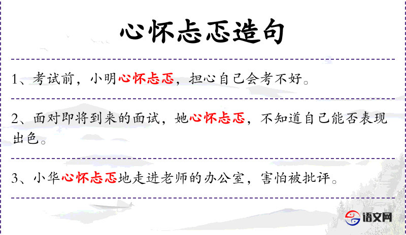 - 谓语:心怀忐忑