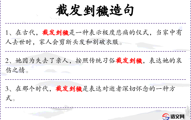 句子:“她决定截发剉穢,以此来纪念她那早逝的挚友。”