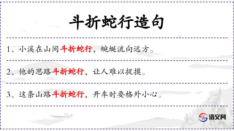 句子:“河流在平原上斗折蛇行,形成了美丽的风景线。”