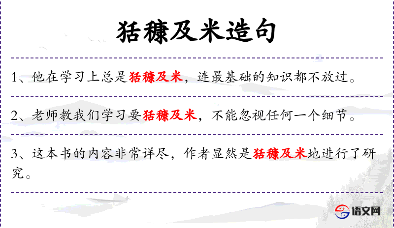 1. 【狧穅及米】 比喻逐步侵蚀渐及全体。