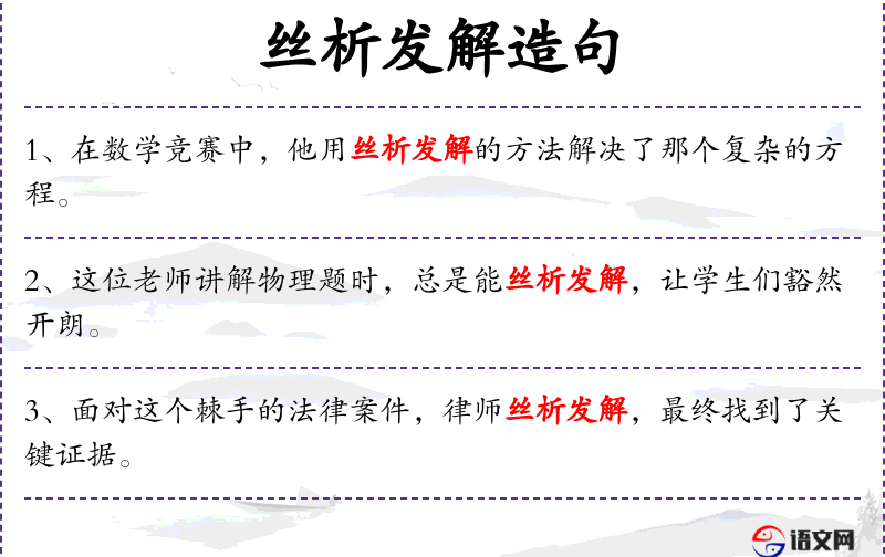 “丝析发解”这个成语源自**古代,形容分析问题非常细致、透彻。在辩论赛中使用这样的成语,体现了对辩论技巧的高度评价,也反映了中华文化中对逻辑和细致分析的重视。
