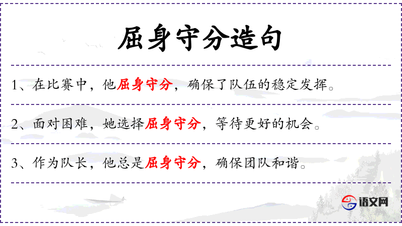 - 屈身守分:指在压力或挑战面前采取保守策略,不主动出击。