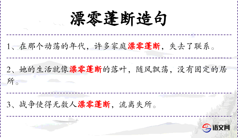 1. 【漂零蓬断】 - 漂泊零落如蓬草一样随风飞转,转徙无常。