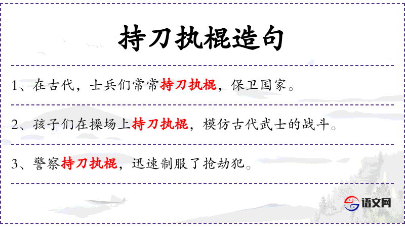 - 谓语:“总是持刀执棍,行侠仗义。”