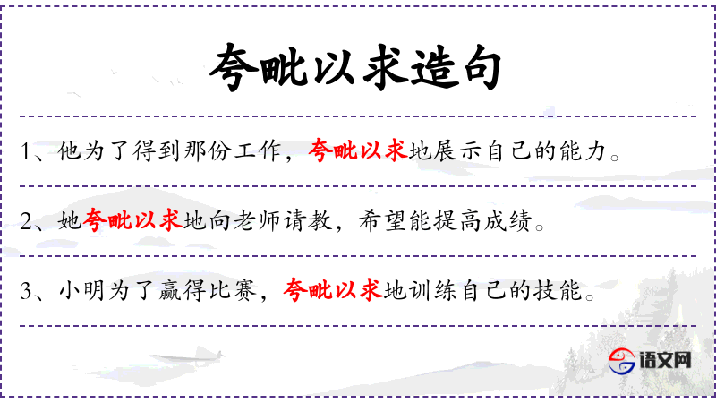 句子:“他为了得到那份工作,夸毗以求地展示自己的能力。”