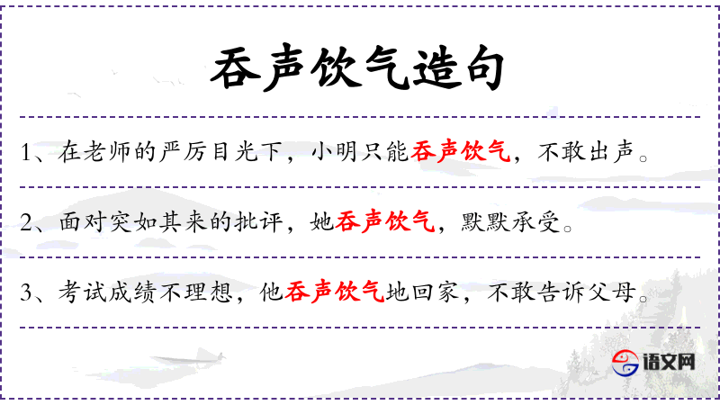 - 成语“吞声饮气”反映了传统文化中对于忍耐和自我克制的重视。