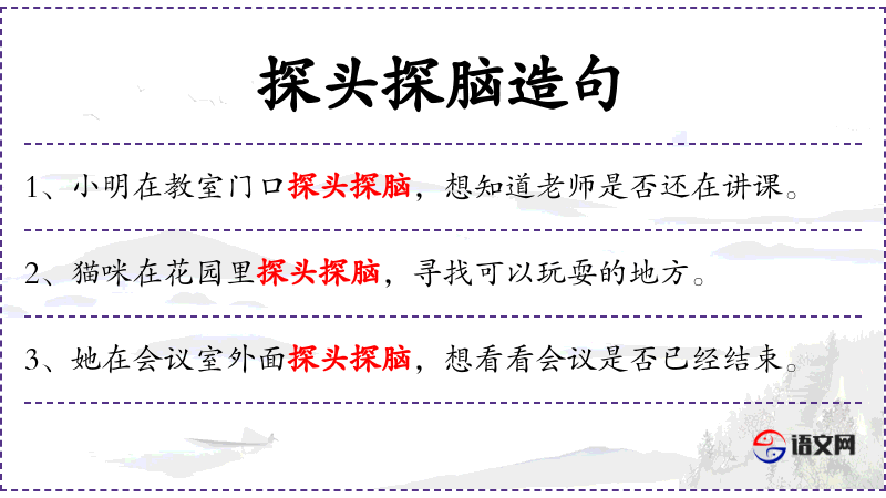 - 探头探脑:形容偷偷摸摸地看,常用于描述某人好奇或小心地观察周围环境。