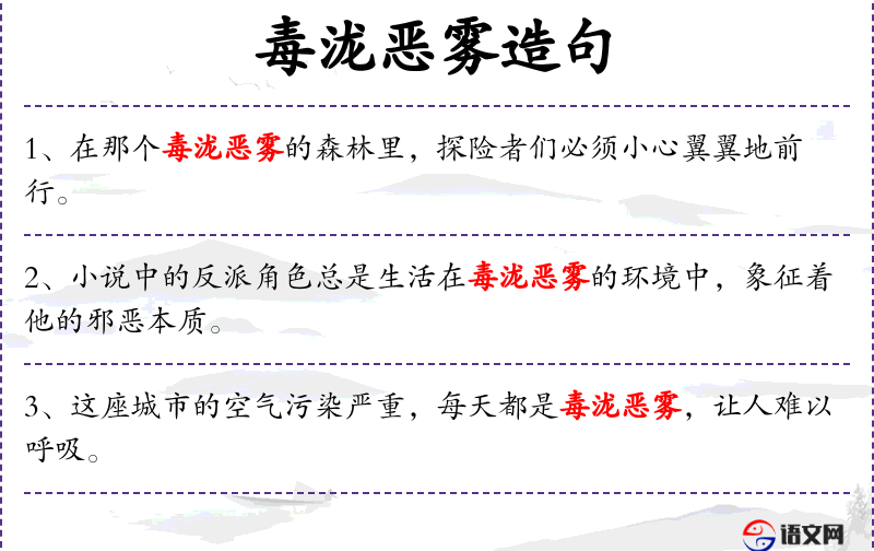 1. 【毒泷恶雾】 恶劣的云雨雾气。比喻暴虐凶残的黑暗势力。