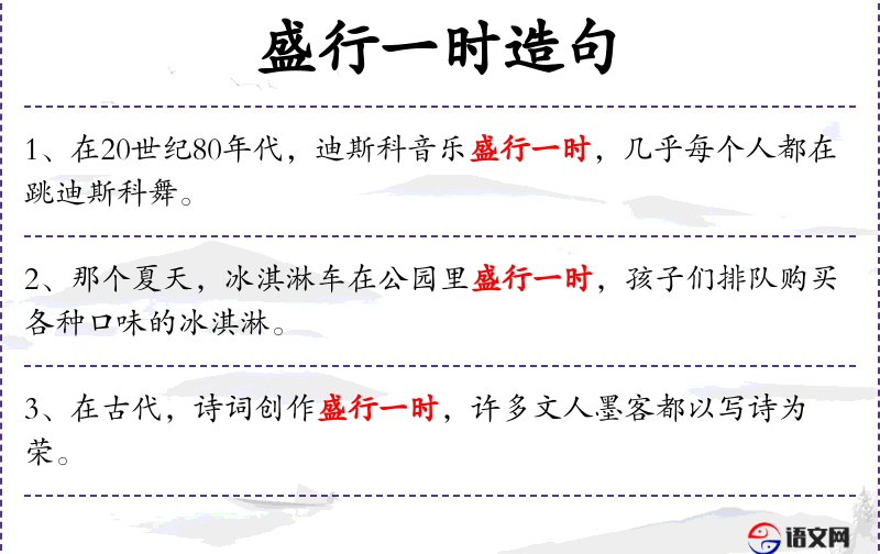 1. 【盛行一时】 - 盛:兴旺、兴盛。形容一时特别兴盛或流行。