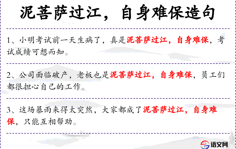5. 【泥菩萨过江】 表示连自己也保不住,更谈不上帮助别人。