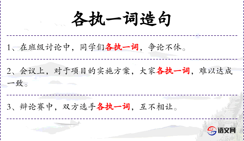 句子:“在班级讨论中,同学们各执一词,争论不休。”