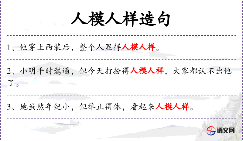 - 宾语:人模人样的形象