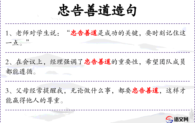 - “忠告善道是我们无论在学*还是工作中都应遵循的原则。”