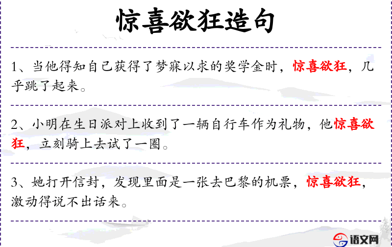 - 惊喜欲狂:形容非常惊喜,几乎要发狂。 *. 激动:情绪上的强烈反应。