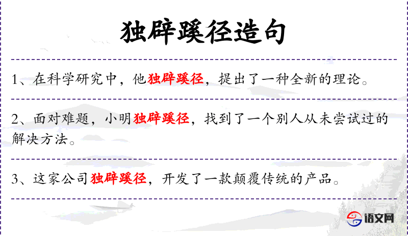 3. 【独辟蹊径】 - 自己开辟一条路。比喻独创一种风格或新的方法。