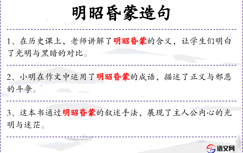 - 在辩论赛中,选手们通过巧妙地使用“明昭昏蒙”,强调了论点的鲜明对比。