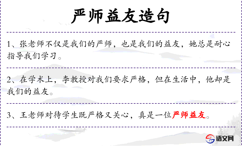 - 严师益友:成语,指既是严格的老师又是能给予帮助的朋友。