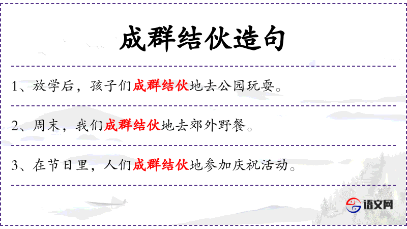 句子:“放学后,孩子们成群结伙地去公园玩耍。”