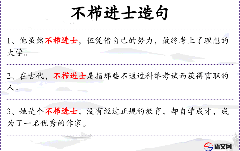句子:“他不栉进士,却凭借自己的才华和努力,成为了一名受人尊敬的学者。”
