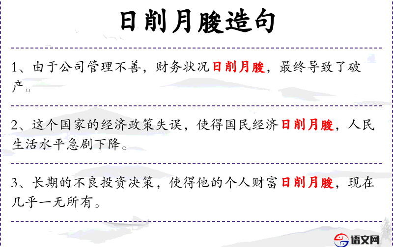 - 日削月朘:形容财富逐渐减少,与“日积月累”相对。