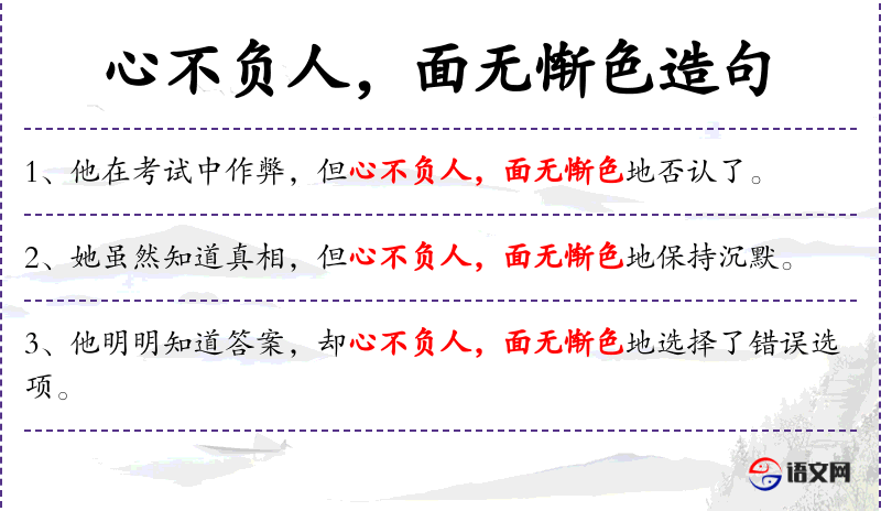 句子中的“心不负人”和“面无惭色”都是中文成语,反映了中华文化中对道德和行为标准的重视。这些成语在描述人的行为和态度时经常被使用。