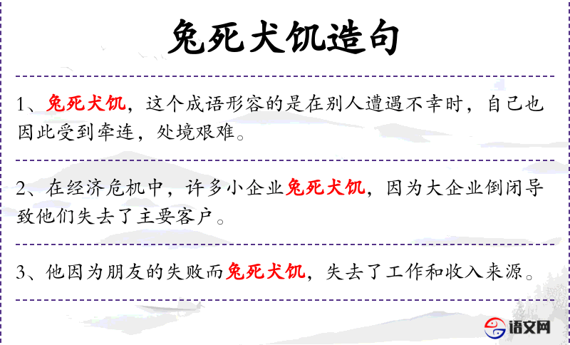 - 文化背景:在**文化中,“兔死犬饥”是一个常用的成语,用来形容生活极度贫困。