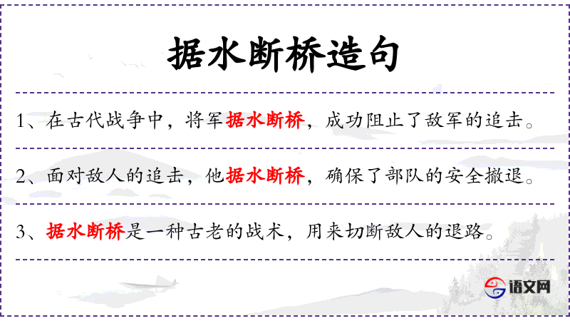- 据水断桥:字面意思是占据水源并切断桥梁,这里指采取极端措施以阻止入侵