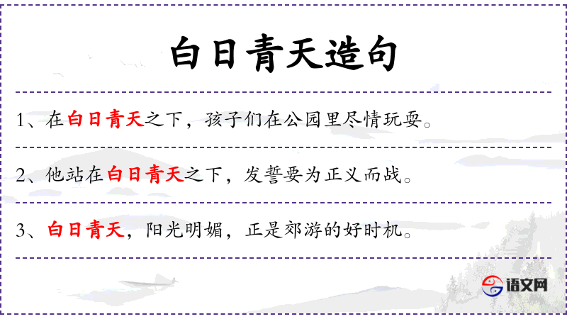 1. 【白日青天】 - 白天。表示强调。