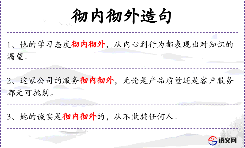 - 宾语:彻内彻外的