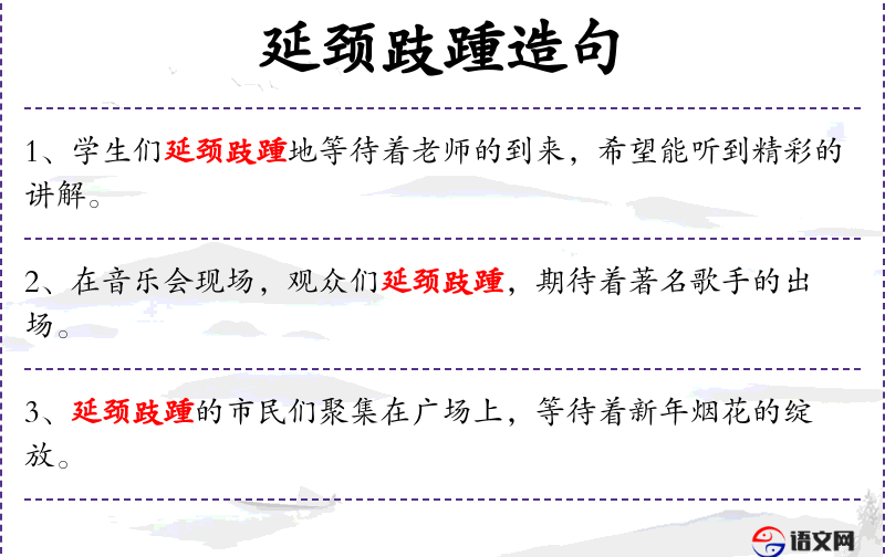 - 谓语:延颈跂踵,想要