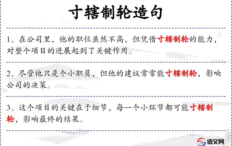 句子:“尽管他只是个小职员,但他的建议常常能寸辖制轮,影响公司的决策。”