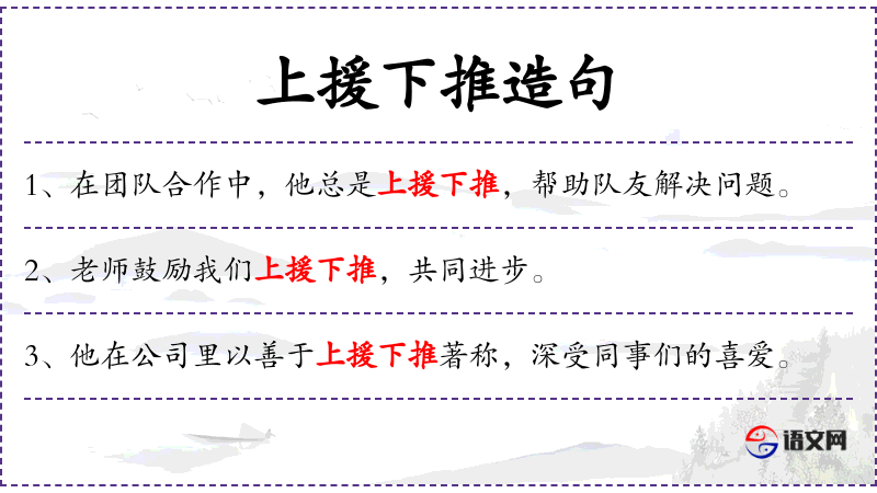 1. 【上援下推】 - 上面牵引下面推。比喻推荐引进。