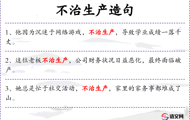 1. 【不治生产】 治:管理。指不注意或无暇料理自己的生计。