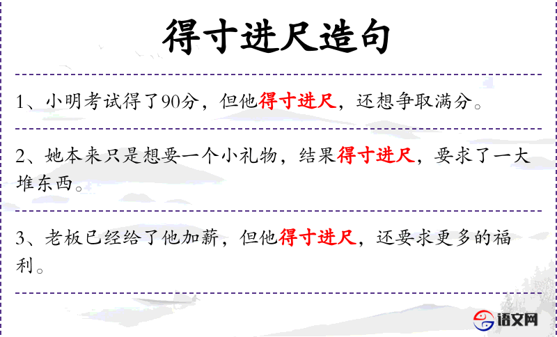 - “得寸进尺”是一个中文成语,反映了**人对于贪心行为的批评态度。