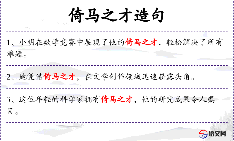 - 倚马之才:这个成语源自**古代,形容人才华横溢,能力出众。