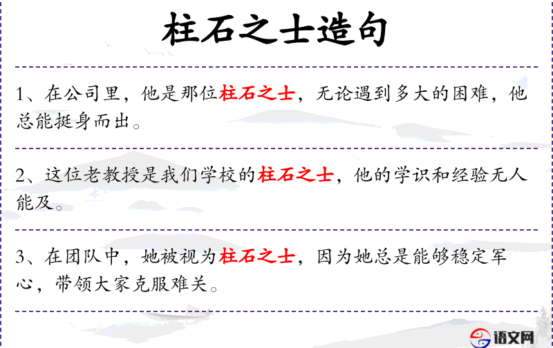 1. 【柱石之士】 柱石:支梁的柱和承柱的石。旧时指担负国家重任的人。
