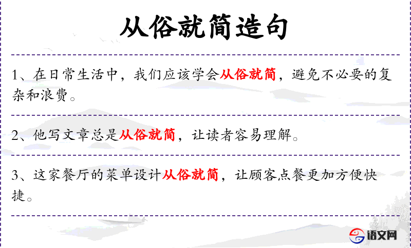 - 从俗就简:指按照常规或简单的方式进行,不复杂化。
