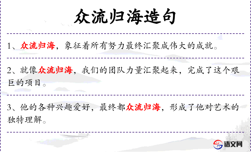 句子中的“众流归海”可能蕴含了**传统文化中“和而不同”的理念,强调多元文化的和谐共存。